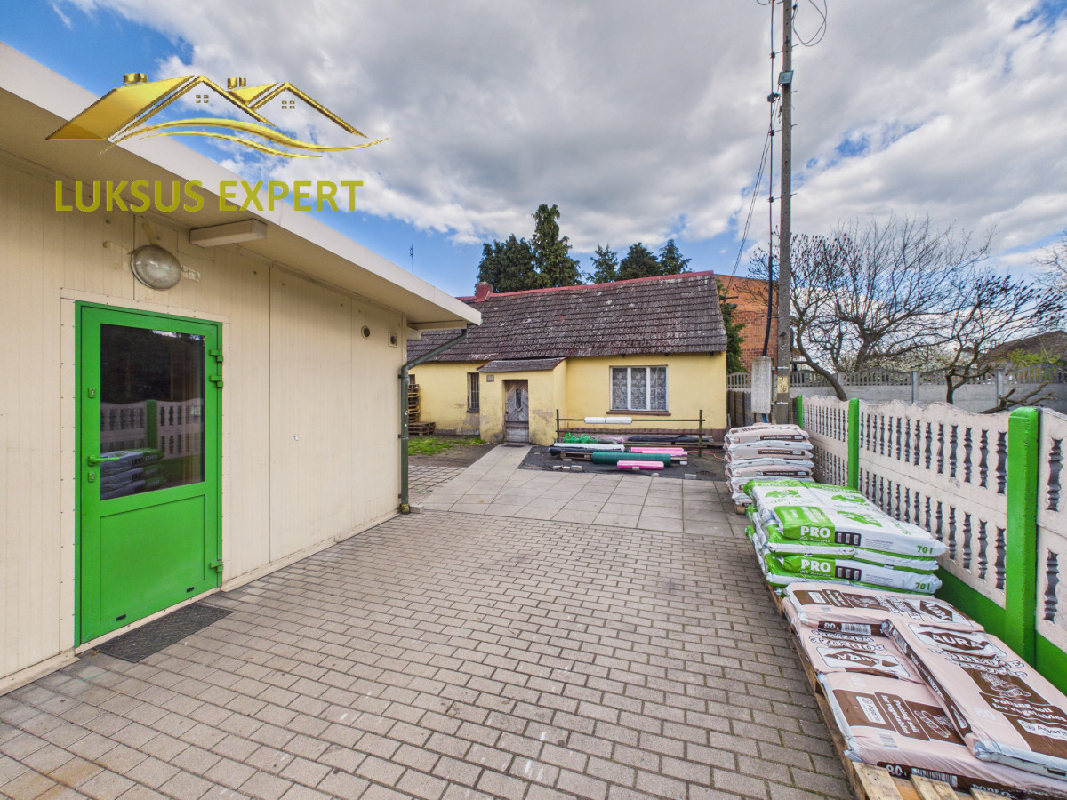 lokal handlowy o powierzchni zabudowy ok 118mk oraz budynek mieszkalny obecnie służący jako magazyn oraz kotłownia.