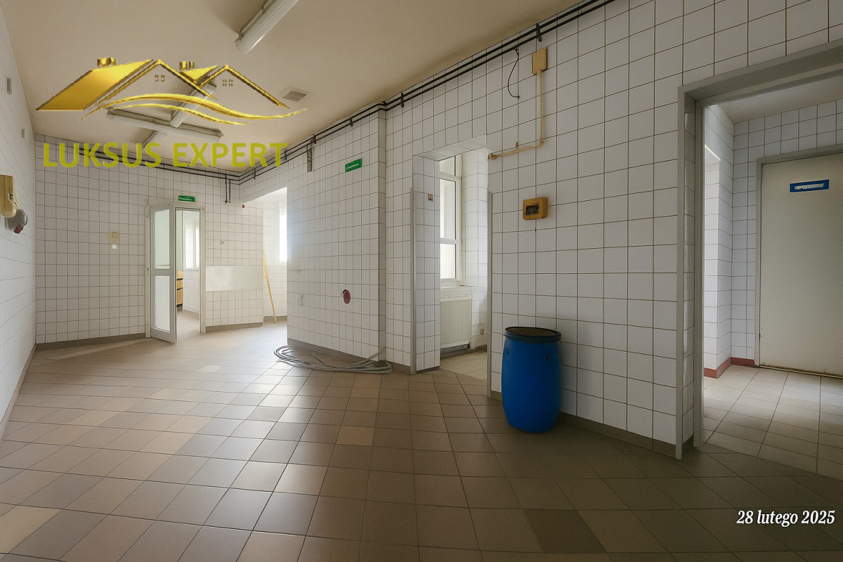 Budynek składa się z ok. 20-tu pomieszczeń tj. kawiarnia, biuro, pomieszczenia produkcyjne, chłodnie, socjale, szatnie, toalety i łazienki.